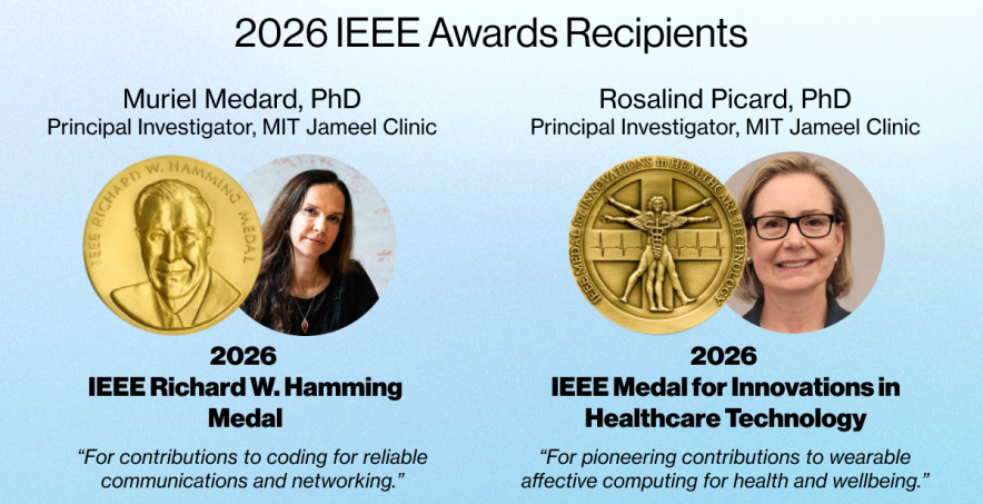 The Institute of Electrical and Electronics Engineers (IEEE) have announced their selection of 24 awardees yesterday in the 2026 IEEE Awards, which includes MIT Jameel Clinic Principal Investigators Muriel Medard and Rosalind Picard. Presented on behalf of the IEEE Board of Directors, these medals recognize innovators whose work has shaped modern technology across disciplines including AI, education, and semiconductors.